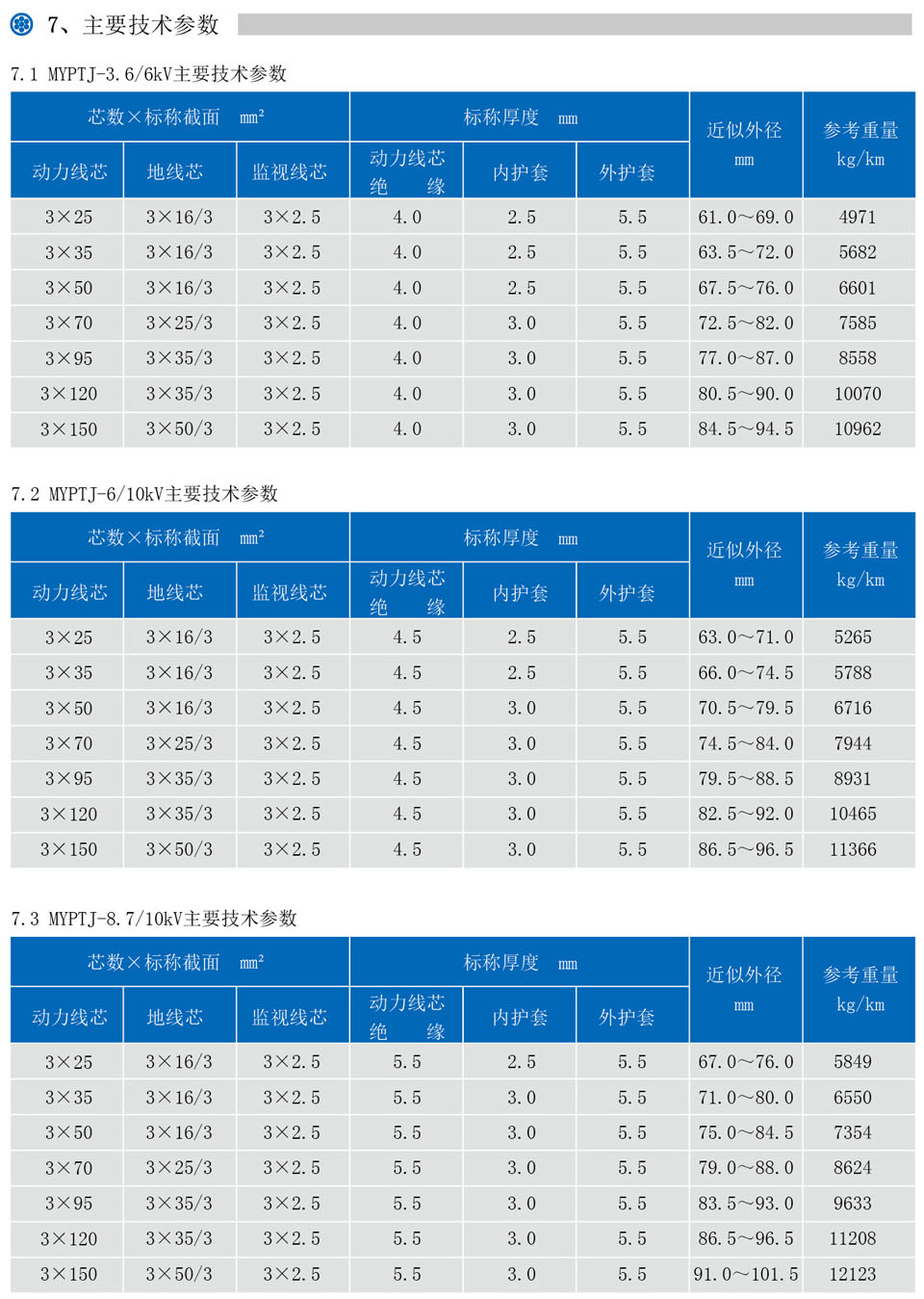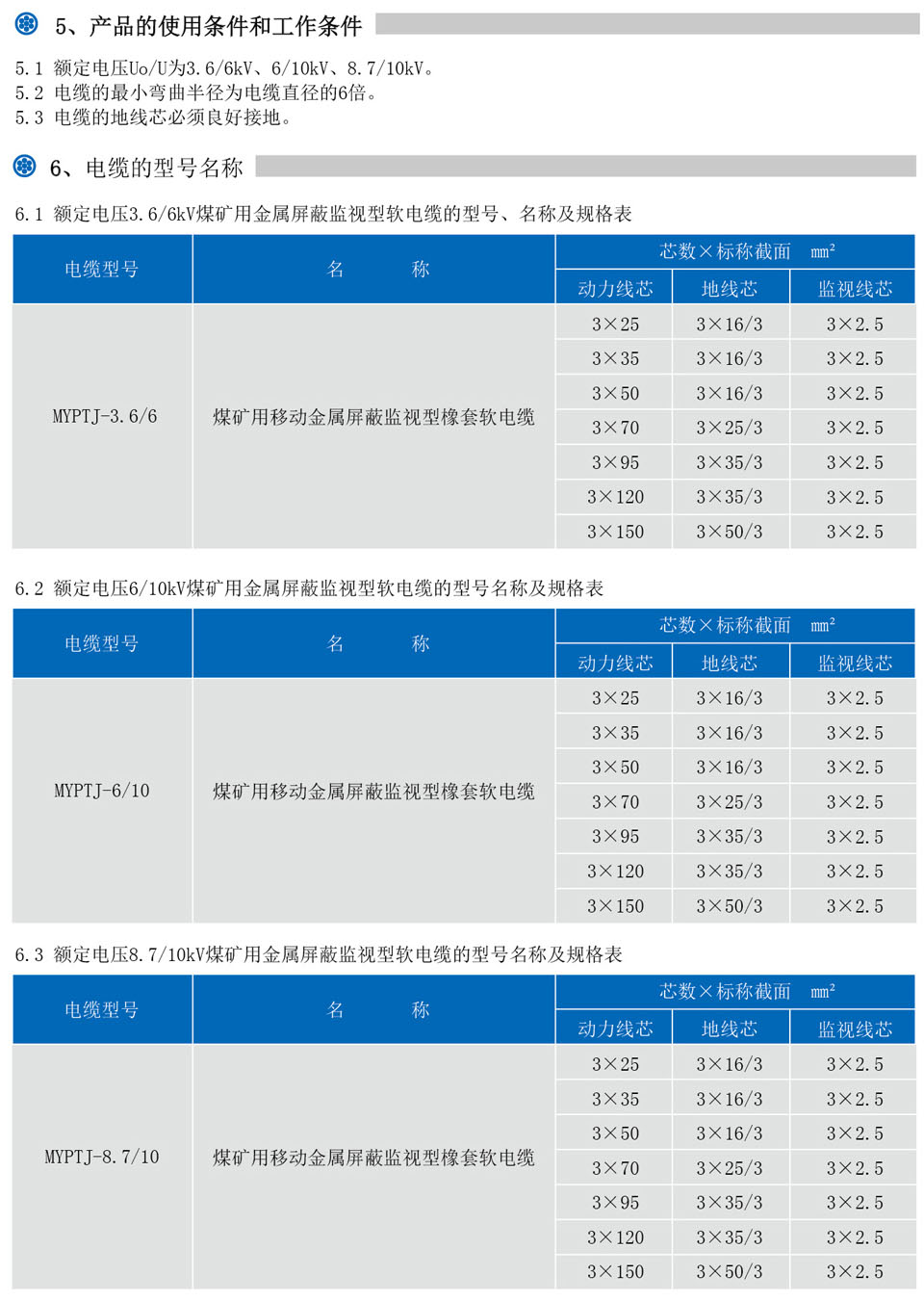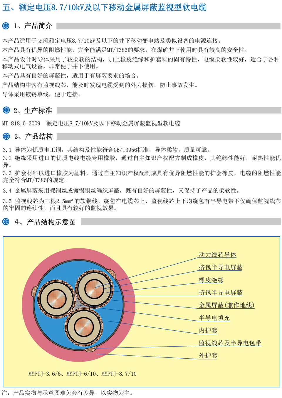額定電壓8.7/10kV及以下移動金屬屏蔽監視型軟電纜