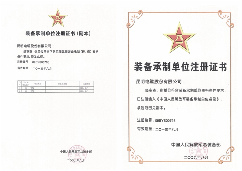 裝備承制單位注冊證書