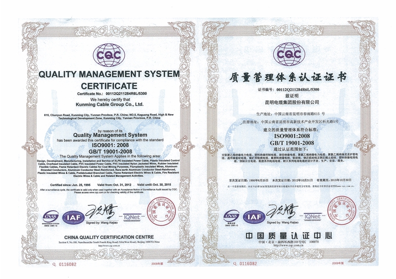 質量管理體系認證證書