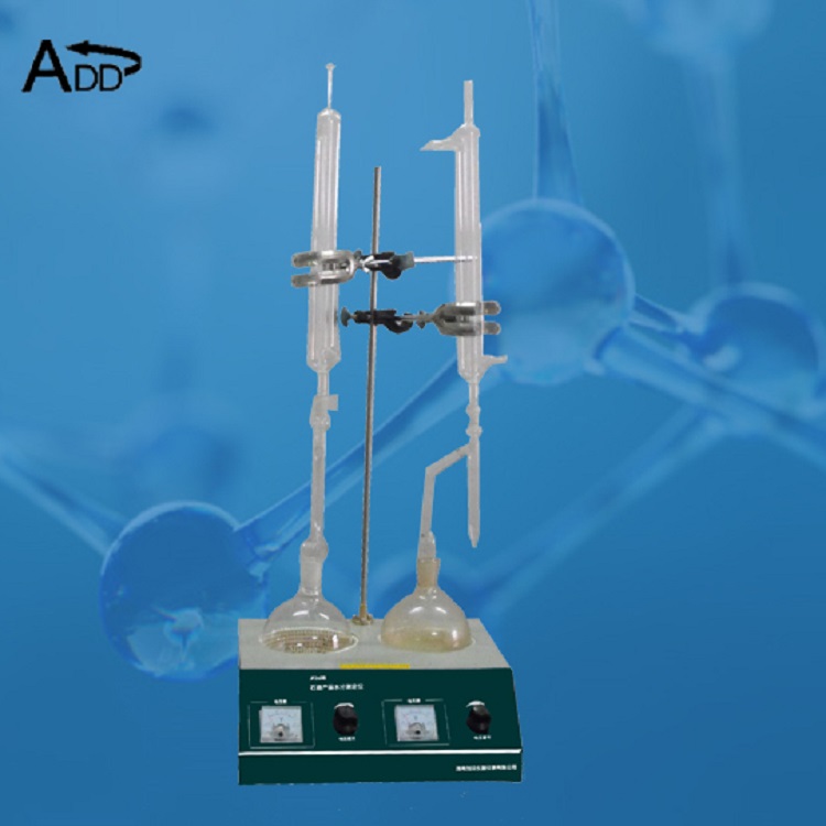 本儀器適用于測定石油產品中的水含量,用百分數表示。 一定量的試樣與無水溶劑混合,進行蒸餾測定其水分含量。